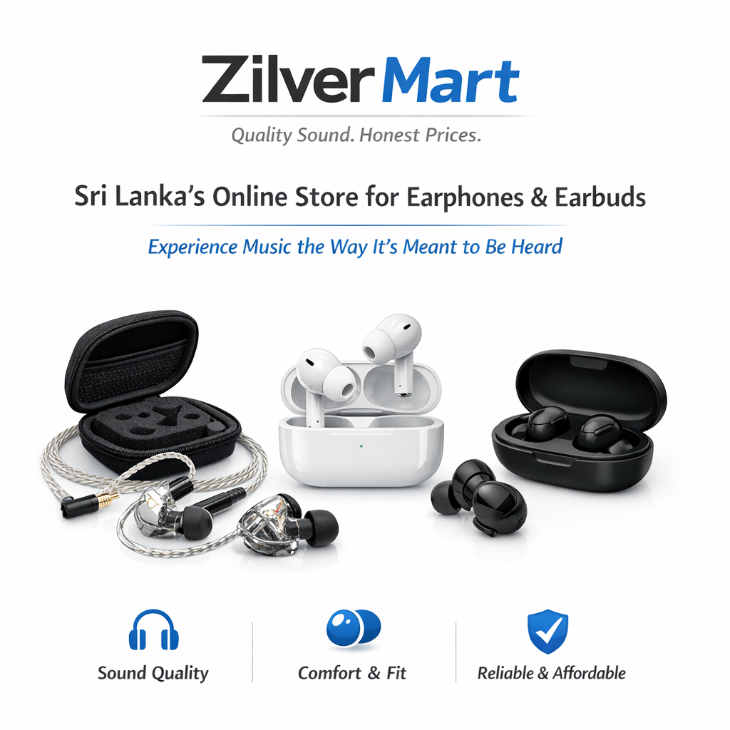 Zilver Mart is a Sri Lanka based online store dedicated to delivering high-quality earphones, in-ear monitors, and Bluetooth earbuds at honest prices. We focus on sound quality, comfort, and reliability, so you can enjoy music the way it’s meant to be heard.